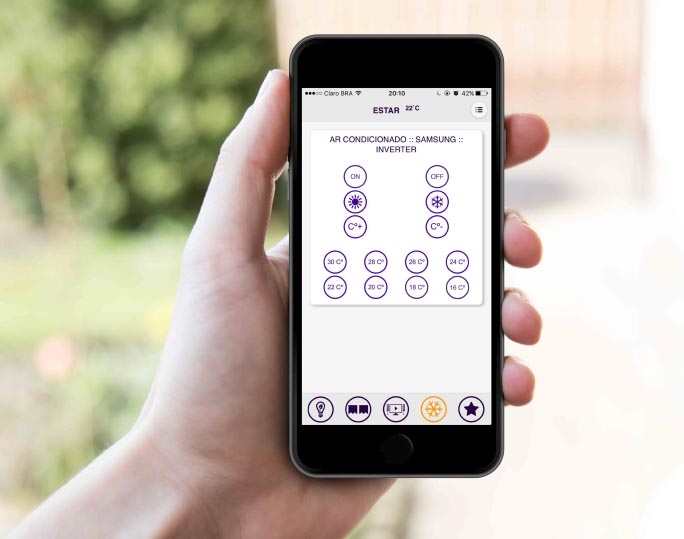 Através do APP é possivel comandar todos os equipamentos de IR de sua casa, como Televisores, Ar-Condicionado, Dispositivos de Mídia, etc.